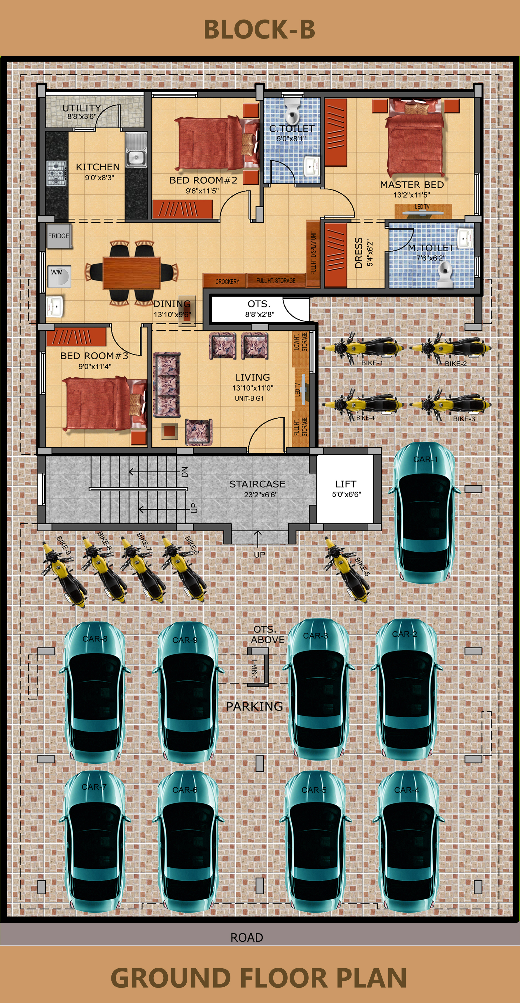 Each units having one car and bike parking facility. |